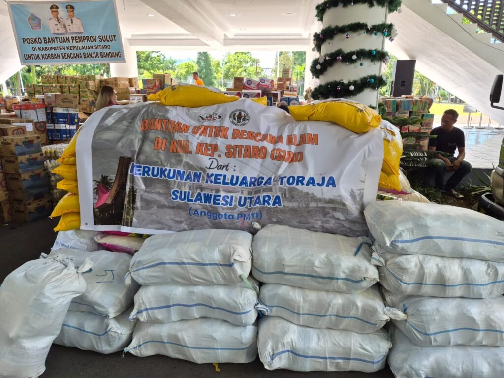 MANADO – Kerukunan Keluarga Toraja (KKT) Sulawesi Utara menyalurkan bantuan kemanusiaan bagi masyarakat terdampak bencana alam di Siau, Kabupaten Kepulauan Sitaro.